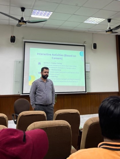 The symposium emphasized the transformative role of innovation in shaping management strategies and driving national development. Participants examined global shifts such as digital transformation, sustainability imperatives, and competitiveness in a rapidly changing economy. Frameworks including Design Thinking and Blue Ocean Strategy were presented to illustrate practical pathways for fostering creativity and organizational growth. Special attention was given to Pakistan’s challenges, including regulatory hurdles, funding limitations, and cultural resistance to change, while highlighting enablers such as policy reforms, education, and technology adoption. Through interactive activities inspired by real-world cases like Careem, participants engaged in problem-solving, brainstorming, and role-playing exercises.